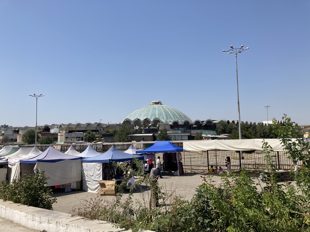 Nous repartons encore vers l’ouest pour arriver au Chorsu Bazar et là c’est le changement complet d’ambiance !! Des dédales de petits passages avec un nombre de vendeurs absolument incroyable, organisé en zones (vêtements, outillage, alimentation, …) avec la viande dans le bâtiment principal. Nous poursuivons par la visite de la Madrasa Koukeldach, puis passons devant la mosquée Dzhuma qu’il n’est a priori pas possible de visiter.
